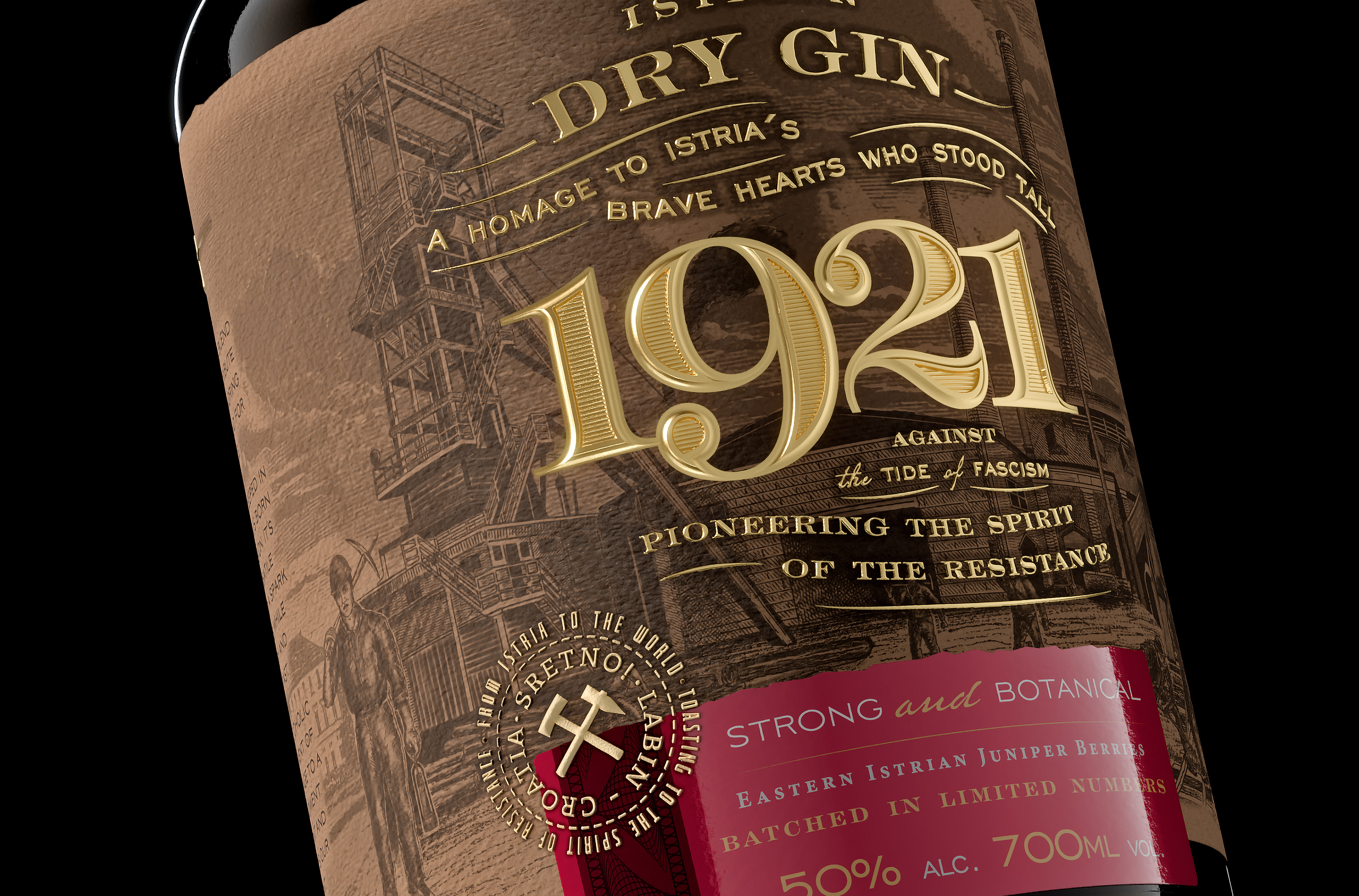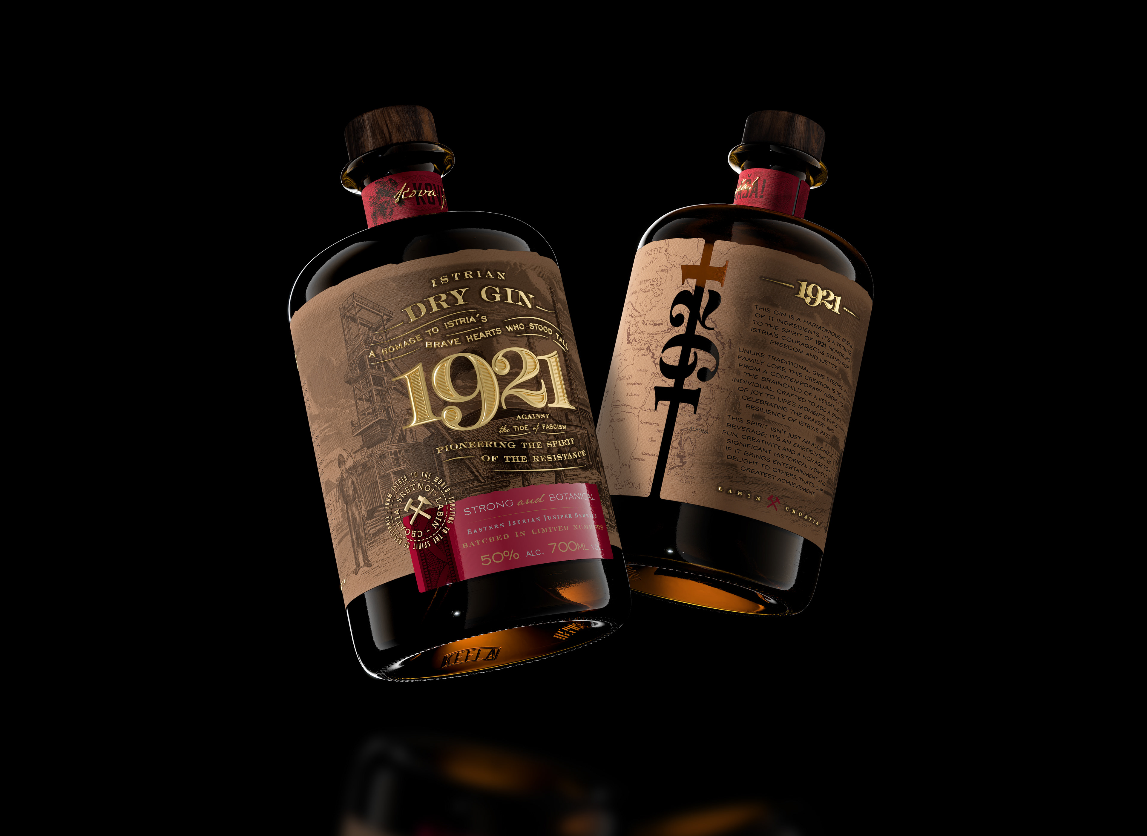 This gin is a distillation of courage and creativity. A bold blend of 11 ingredients, it pays tribute to the spirit of 1921—when Istria stood up for freedom and justice.